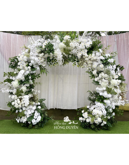 Cổng tròn trắng-xanh lá TR02